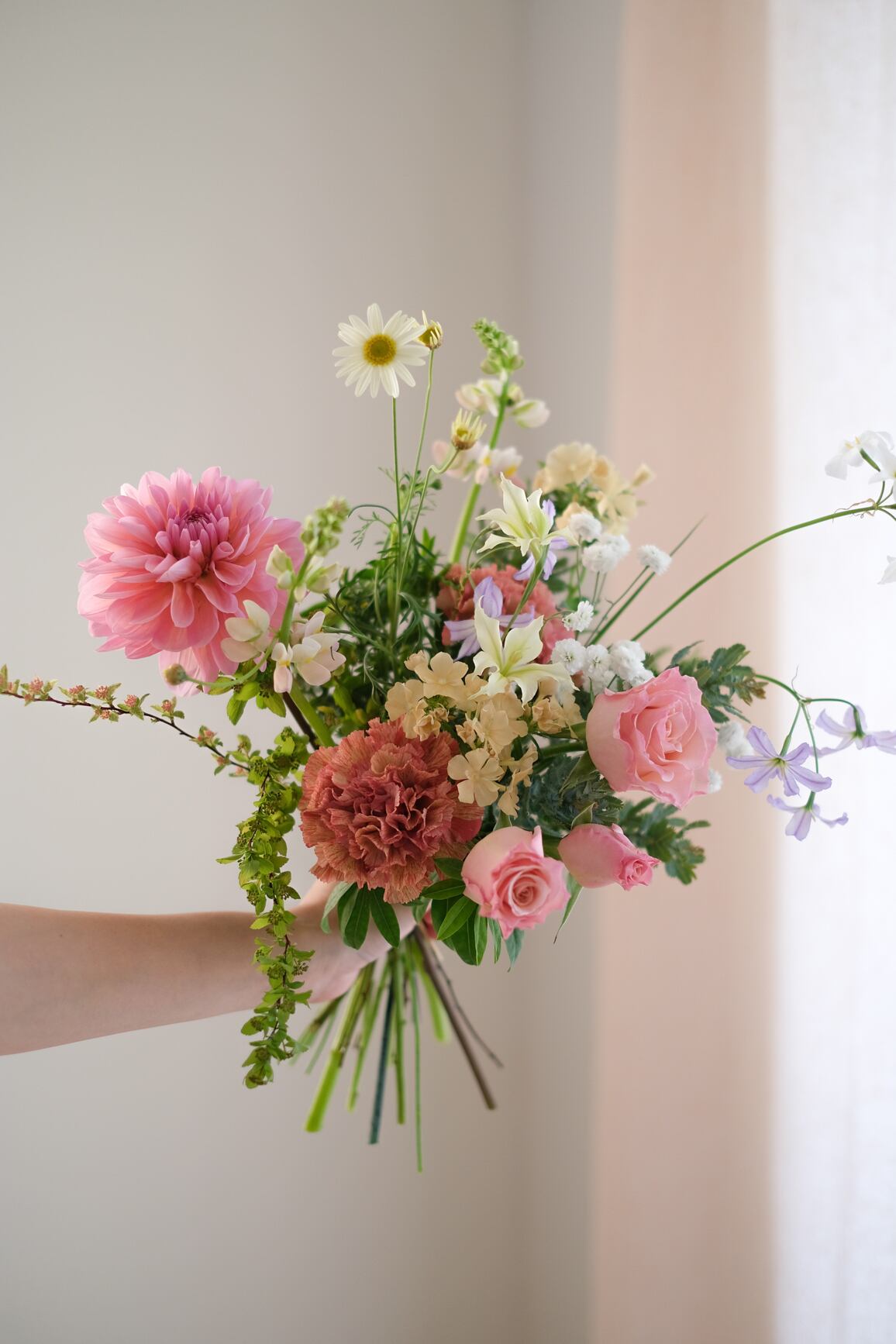 この季節に出会うときめくお花たちを、ふんわりと束ねたブーケです