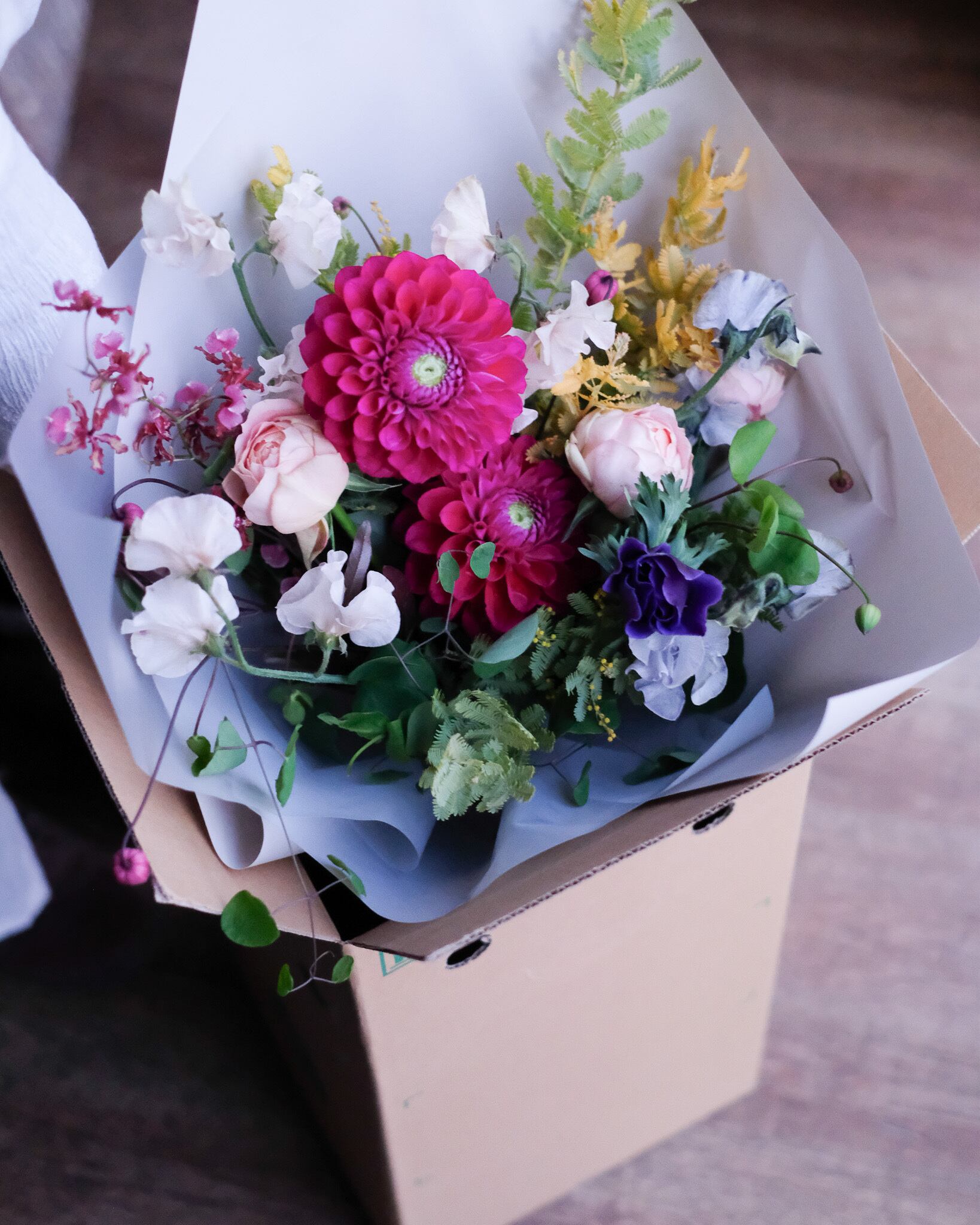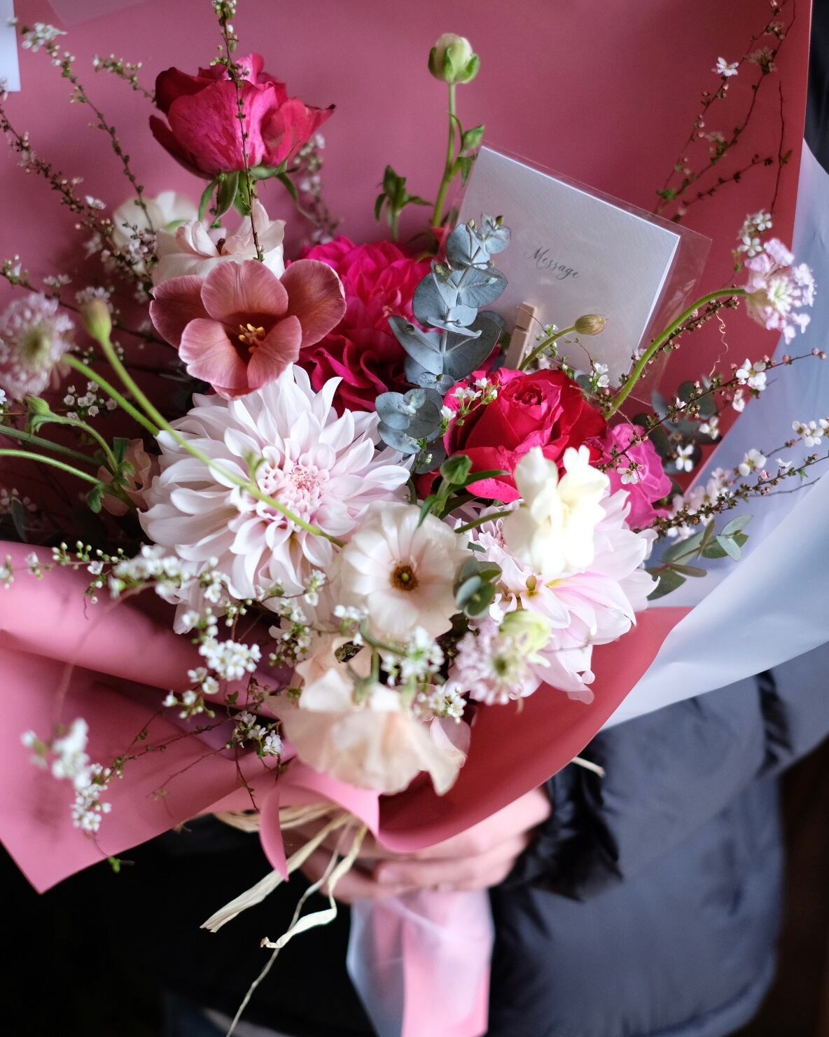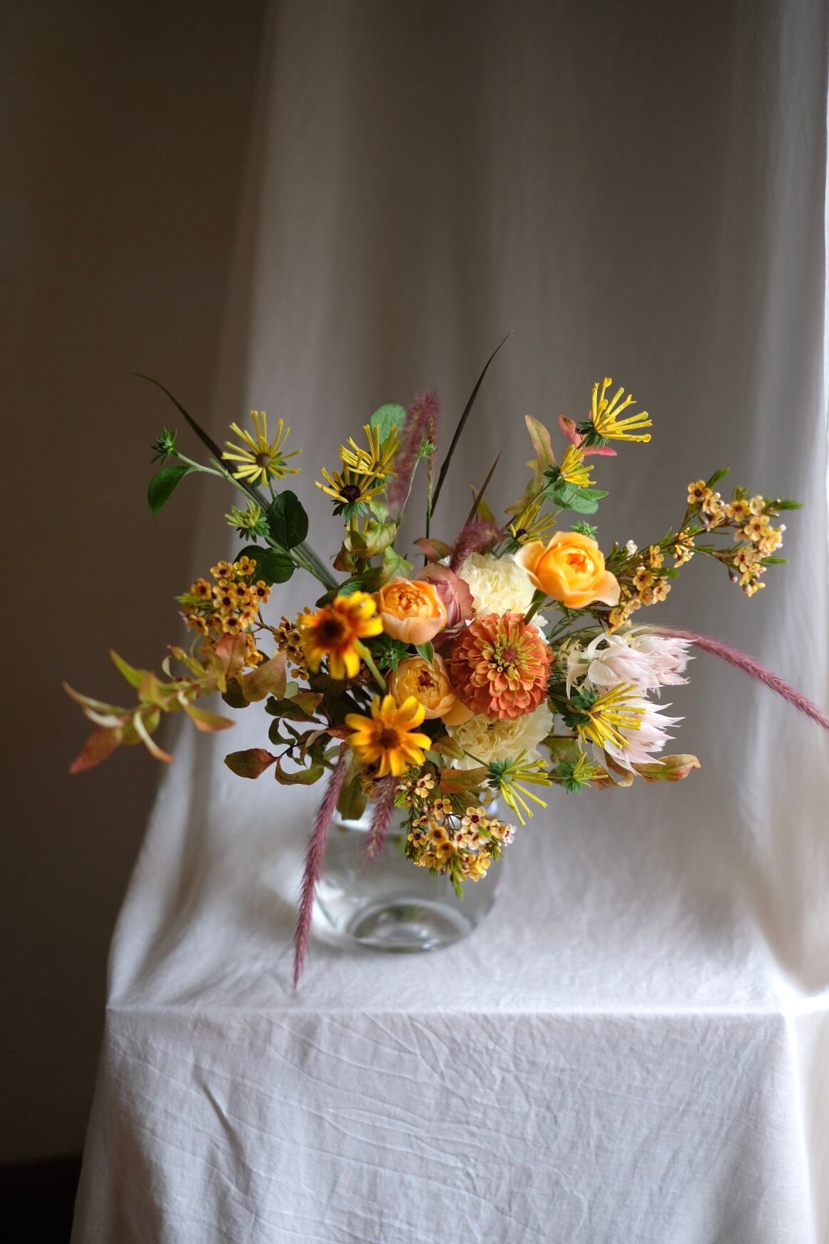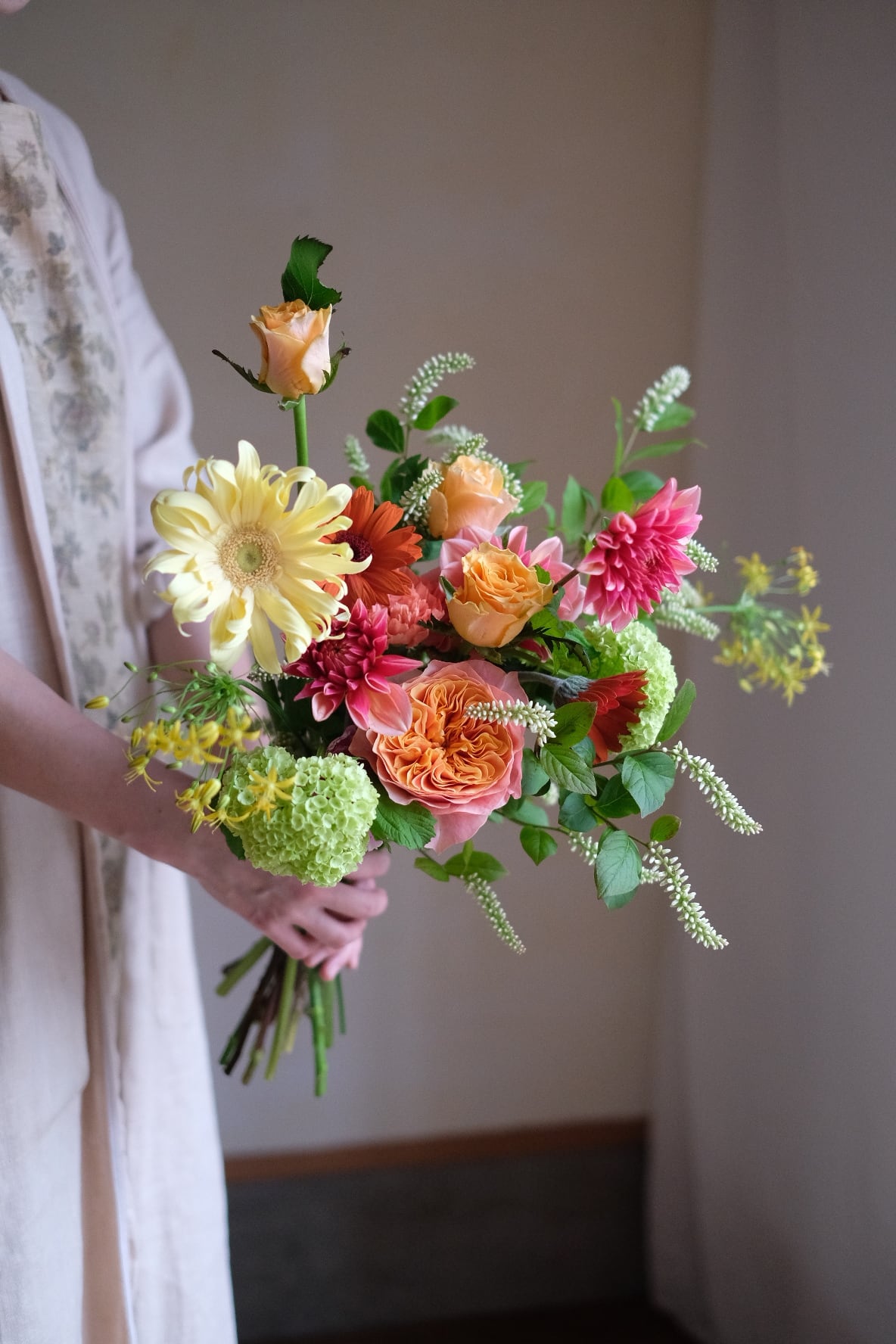 その時々に出会う、旬のお花たちを束ねたブーケです。